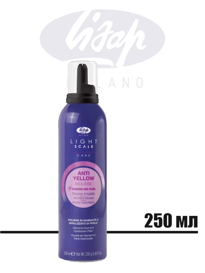 Мусс обогащен пурпурным пигментом и создан для нейтрализации нежелательных желтых нюансов. Подходит для всех типов волос, особенно для тонких. Алмазная пыль и гидролизованный жемчуг в составе улучшают структуру волос, придают отличный блеск и укрепляют локоны, делая их более здоровыми.